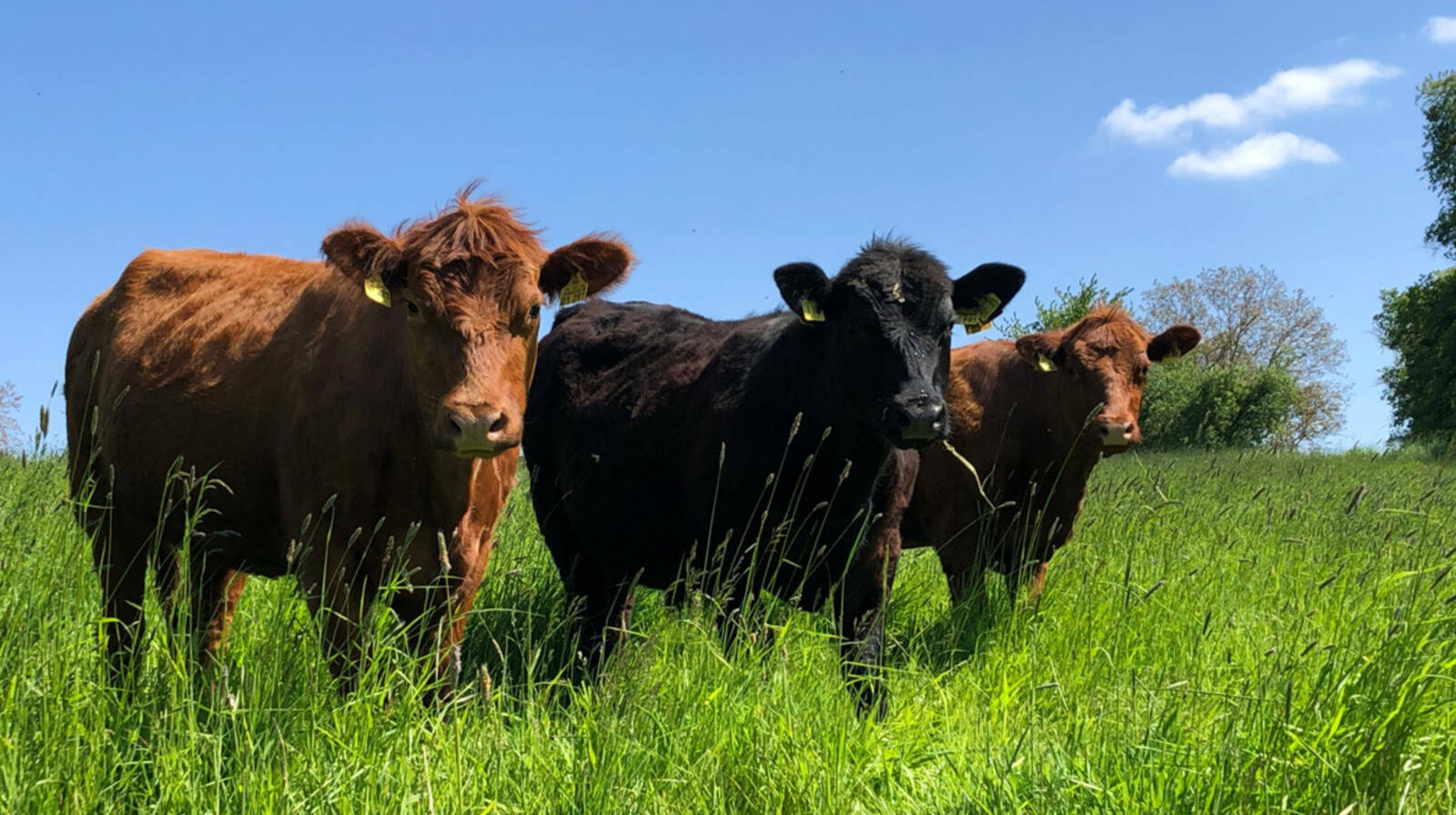 Unsere Rinder halten wir ganzjährig draußen. Gefüttert wird nur eigen produziertes Futter, was aus Heu, Silage und etwas Getreideschrot besteht.